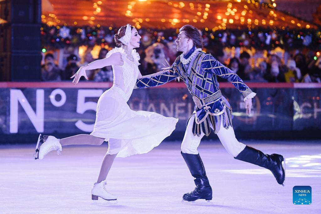 Skaters perform during the opening ceremony of the GUM ice rink on the Red Square in Moscow, Russia, on Nov. 28, 2021. (Xinhua/Evgeny Sinitsyn)