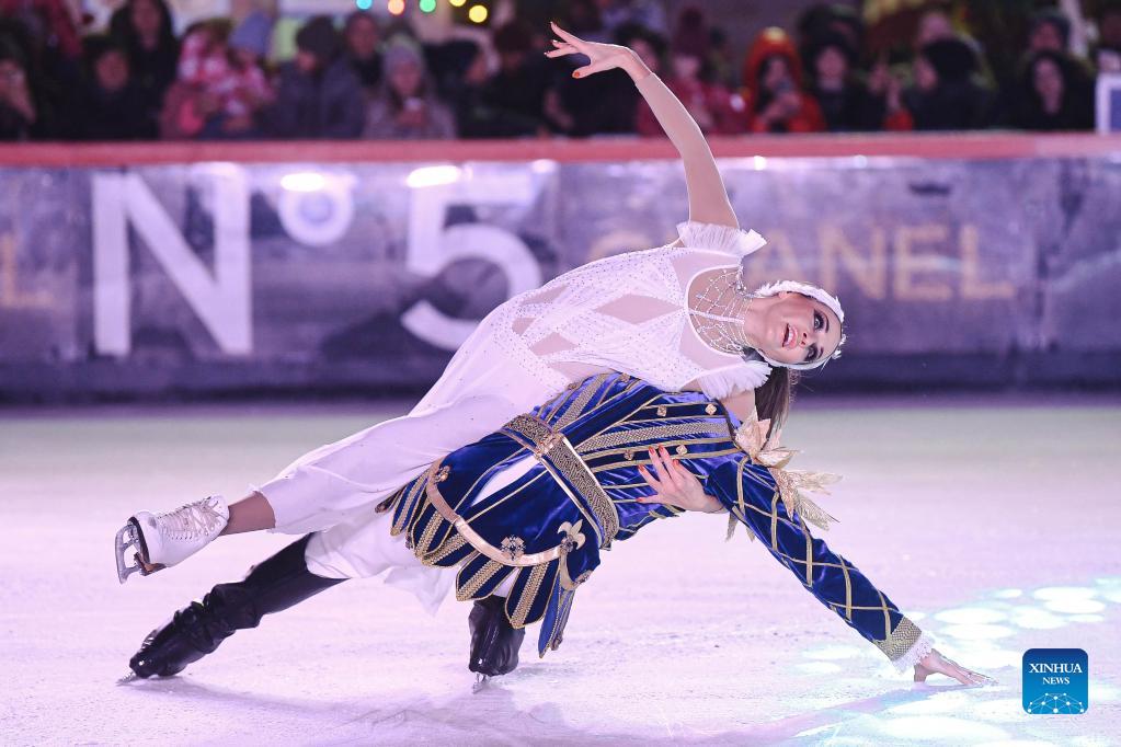 Skaters perform during the opening ceremony of the GUM ice rink on the Red Square in Moscow, Russia, on Nov. 28, 2021. (Xinhua/Evgeny Sinitsyn)