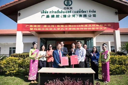 The Confucius Institute at Mahasarakham University in Thailand and Guangdong Guangken Rubber Group Co., Ltd. sign a cooperation agreement on talent cultivation and sharing of resources in a bid to deepen China-Thailand cultural exchanges, Jan.8, 2020. (Photo from the website of Guangdong Guangken Rubber Group Co., Ltd.)