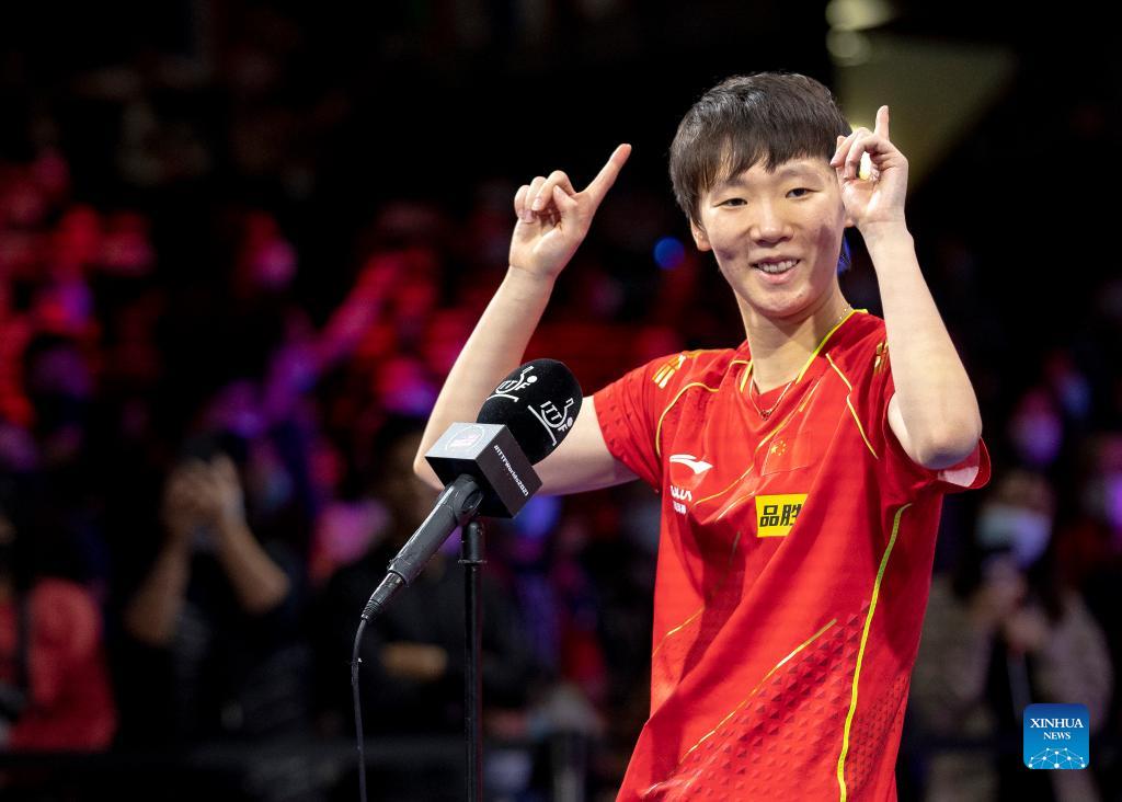 Wang Manyu crowned as women's singles world champion at table tennis worlds