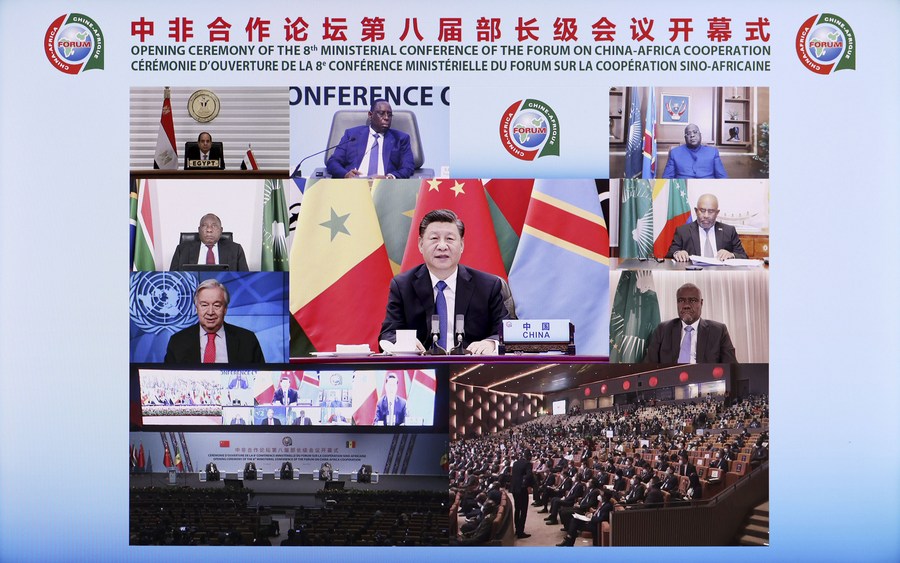 Chinese President Xi Jinping delivers a keynote speech at the opening ceremony of the Eighth Ministerial Conference of the Forum on China-Africa Cooperation (FOCAC) via video link in Beijing, capital of China, Nov. 29, 2021. (Xinhua/Liu Bin)