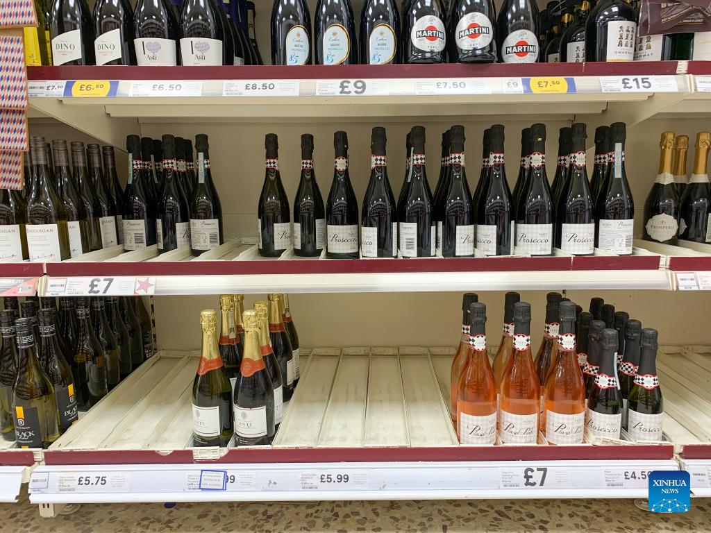 Photo taken on Nov. 29, 2021 shows liquor shelves at a store in Basingstoke, Britain. Consumers across Britain are expected to face higher prices and fewer choices for goods this Christmas season due to supply chain delays and soaring inflation. (Photo by Tim Ireland/Xinhua)