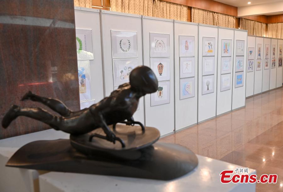 An exhibition, showcasing more than 100 artworks created by Chinese and Greek youth, is held at the Jintai Art Museum in Beijing, capital of China, Dec. 1, 2021. (Photo: China News Service/Hou Yu)