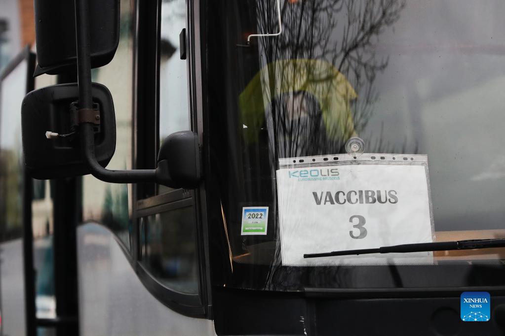 A bus for vaccination is seen in Brussels, Belgium, Nov. 30, 2021. Omicron, a new COVID-19 variant, has been detected in a growing number of countries and regions worldwide, prompting governments to tighten their restrictions and impose new travel bans. (Xinhua/Zheng Huansong)