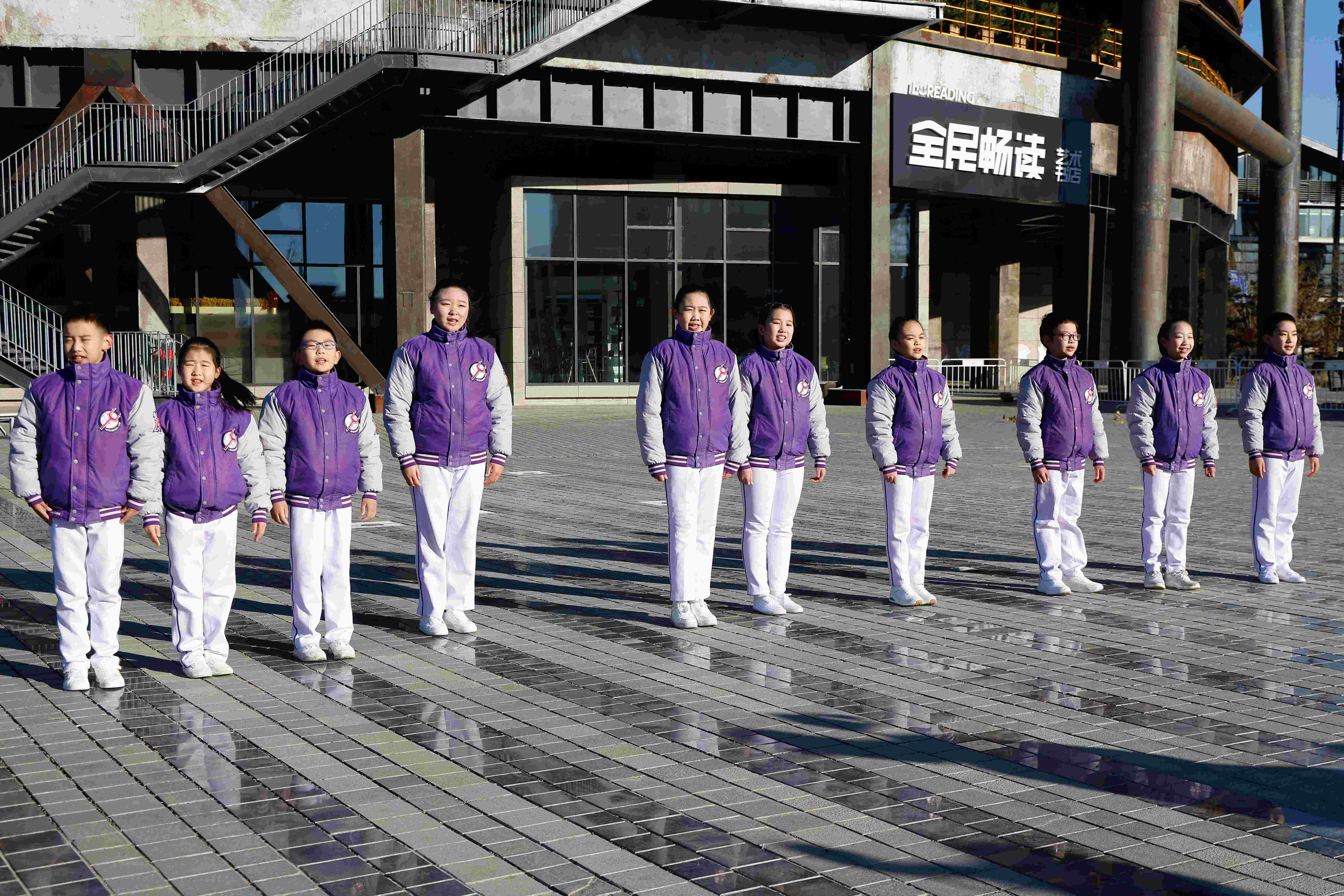 Students from the Shijingshan Philharmonic Experimental Primary School sing the song ‘You and Me’ at Shougang Park in Beijing, Nov. 30, 2021. (People’s Daily Online/Peng Yukai)