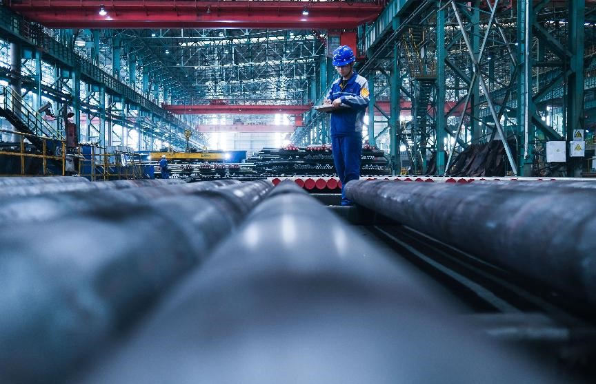 An employee of a subsidiary of Maanshan Iron and Steel Co., Ltd. conducts quality control check on high-quality special steel products, May 14, 2021. (People’s Daily Online/Luo Jisheng)