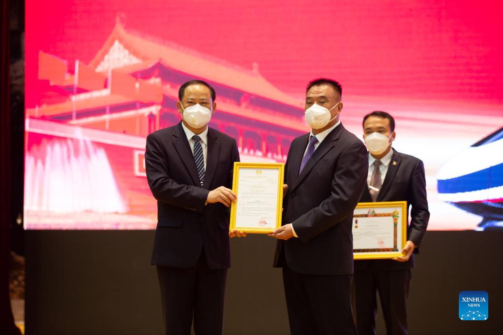At the award ceremony, Lao Deputy Prime Minister and Minister of Planning and Investment Sonexay Siphandone expressed sincere gratitude to the Chinese side for its long-standing support for Laos' socio-economic development and its efforts to help Laos realize the historic transformation from a land-locked country to a land-linked hub.
