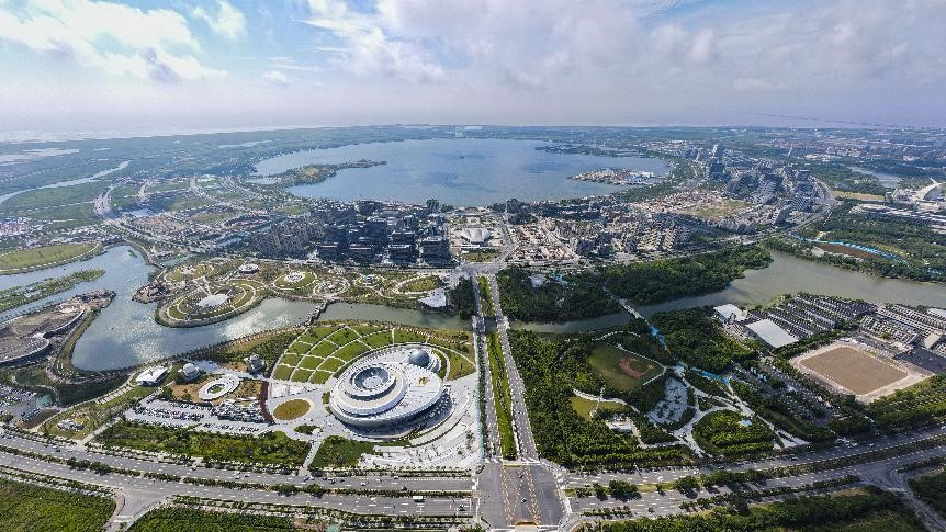 An aerial view of the new Lingang area of the China (Shanghai) Pilot Free Trade Zone. (People’s Daily Online/Wang Chu)