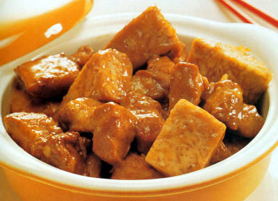 Chicken Tofu is a famous traditional dish of Simao City, chiefly made of chicken and eggs. When properly prepared, the dish looks like freshly produced tofu, and is served after adding such condiments as slivers of boiled eggs, slivers of ham, and chopped scallion. Meant to be enjoyed by using a tablespoon, the dish tastes fresh and slightly sweet, is delicious to all sorts of people, and boasts high nutritional value. Many people want to enjoy it when they come to Simao City.
