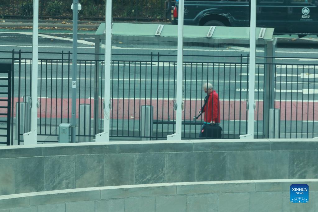 People stand near the UN headquarters building in New York, the United States, on Dec. 2, 2021. The UN headquarters building in New York was on lockdown Thursday after a man with a shotgun was spotted outside. (Xinhua/Wang Jiangang)