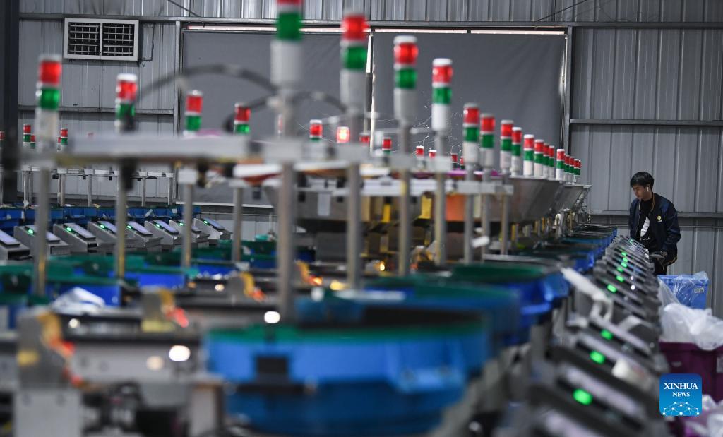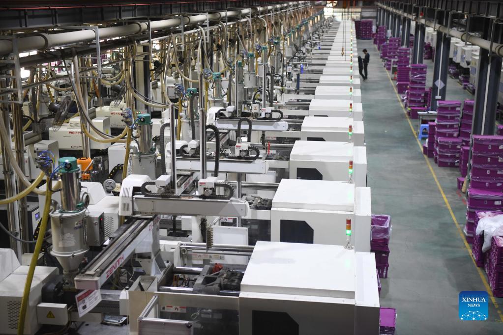 A worker checks equipment at a manufacturer in Shantou City, south China's Guangdong Province, Dec. 2, 2021. Chenghai District in the city of Shantou is dubbed "the capital of toys in China" as the toy industry continues to flourish in this coastal region and a complete industrial chain has been formed. To overcome the impact of the COVID-19 outbreak on the toy industry, the local authorities have been actively supporting the upgrading of the toy industry and helping enterprises build sales platforms as well as open up new sales channels. In the first three quarters of 2021, the toy production value of Chenghai hit 9.296 billion yuan (about 1.4 billion U.S. dollars) and from January to July this year, the district has exported toys worth 2.738 billion yuan, accounting for 56.64 percent of the district's total exports. (Xinhua/Deng Hua)