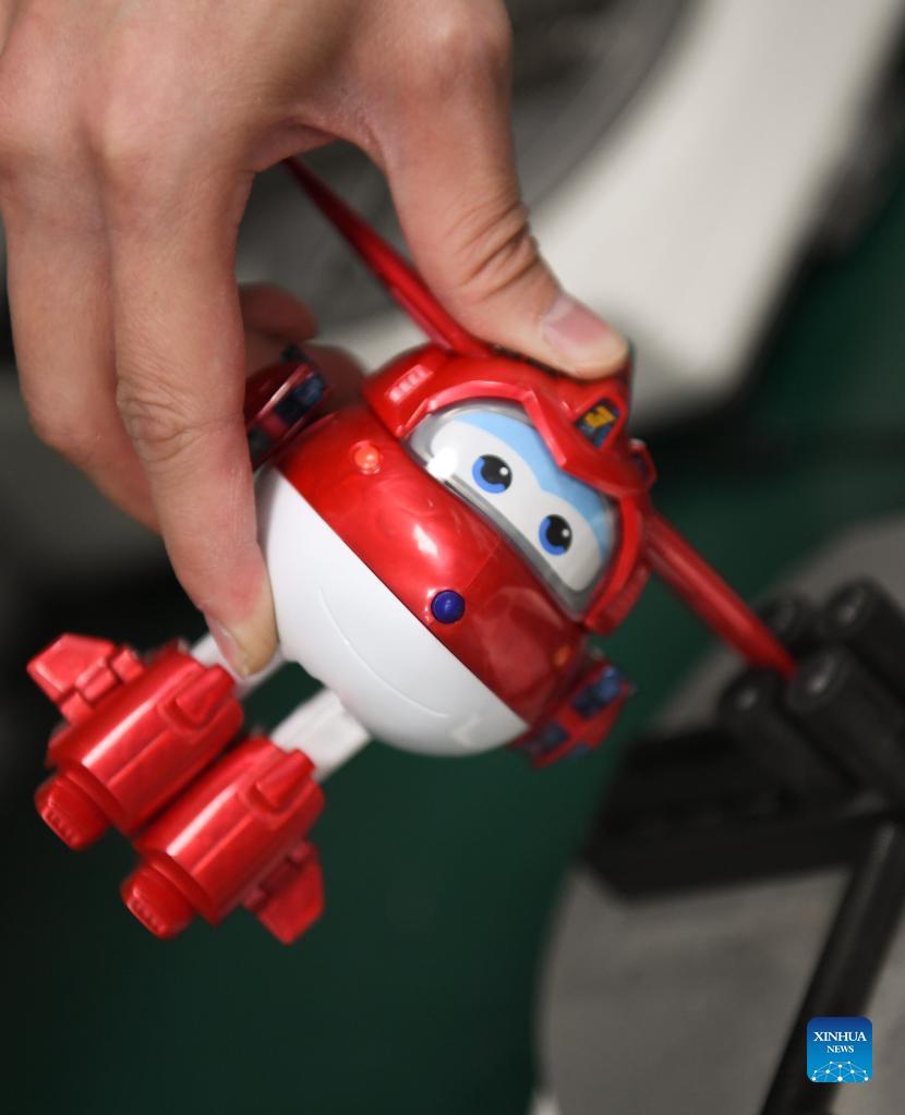 A worker checks the quality of a toy at a toy company in Chenghai District of Shantou City, south China's Guangdong Province, Dec. 2, 2021. Chenghai District in the city of Shantou is dubbed "the capital of toys in China" as the toy industry continues to flourish in this coastal region and a complete industrial chain has been formed. To overcome the impact of the COVID-19 outbreak on the toy industry, the local authorities have been actively supporting the upgrading of the toy industry and helping enterprises build sales platforms as well as open up new sales channels. In the first three quarters of 2021, the toy production value of Chenghai hit 9.296 billion yuan (about 1.4 billion U.S. dollars) and from January to July this year, the district has exported toys worth 2.738 billion yuan, accounting for 56.64 percent of the district's total exports. (Xinhua/Deng Hua)