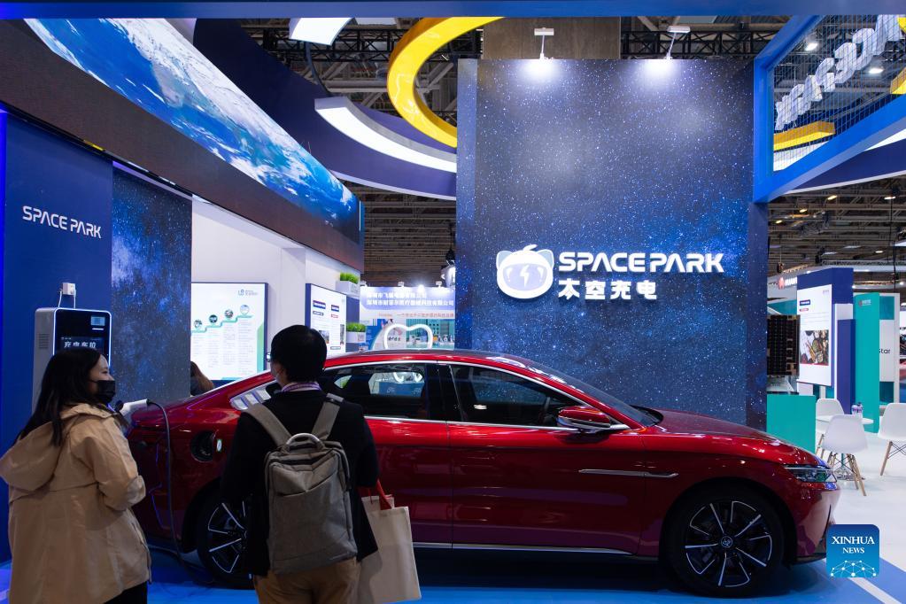 People look at exhibits while visiting the first BEYOND International Technology Innovation Expo in south China's Macao, Dec. 2, 2021. (Xinhua/Cheong Kam Ka)