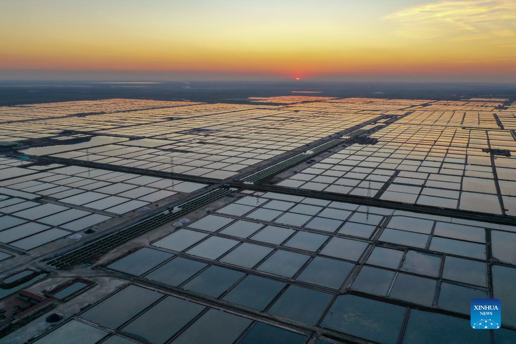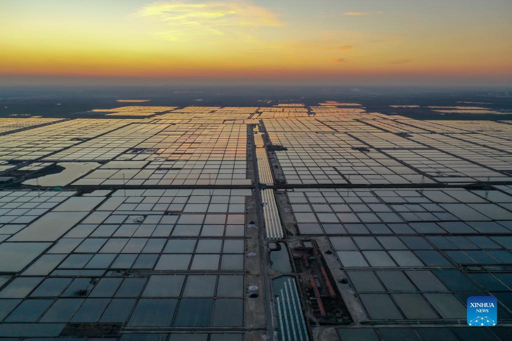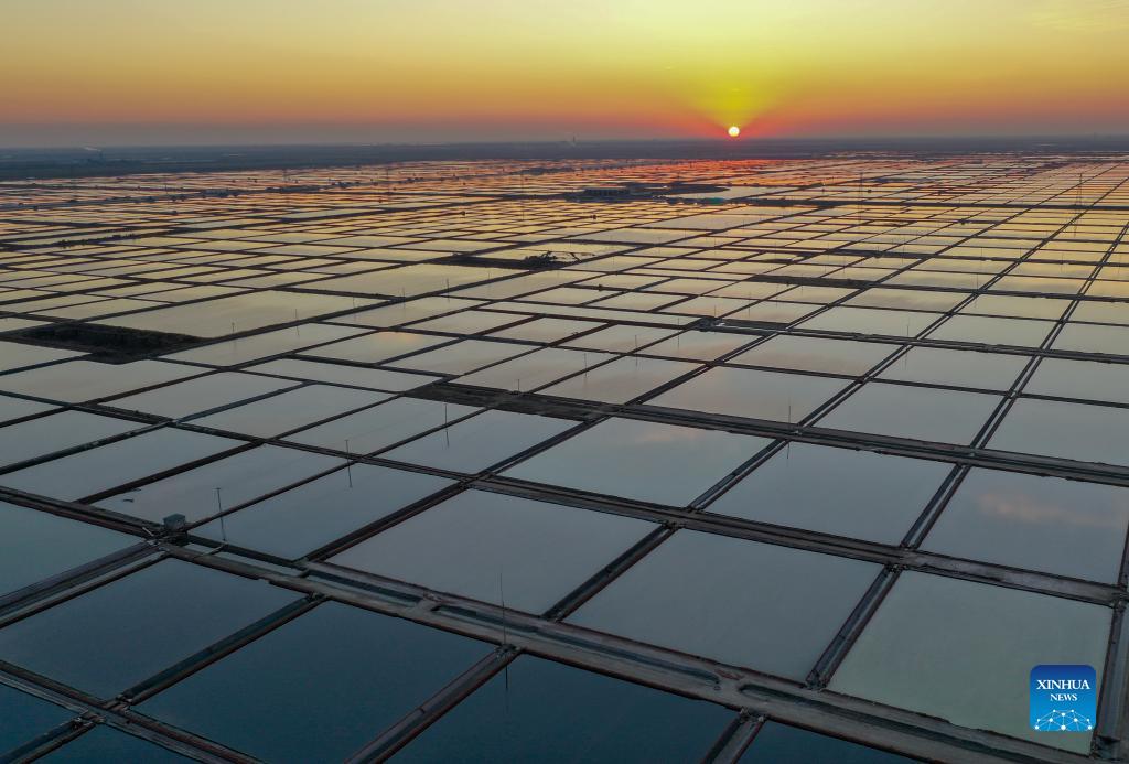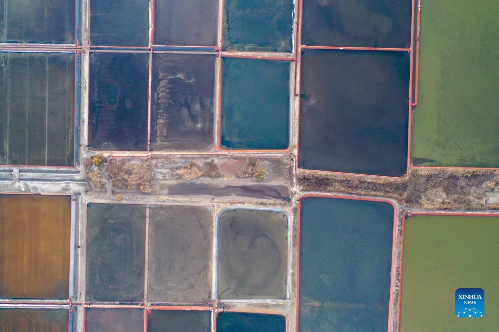 Aerial photo taken on Dec. 1, 2021 shows a view of the salt farms in Yangkou Township, Shouguang City of east China's Shandong Province. (Xinhua/Zhu Zheng)