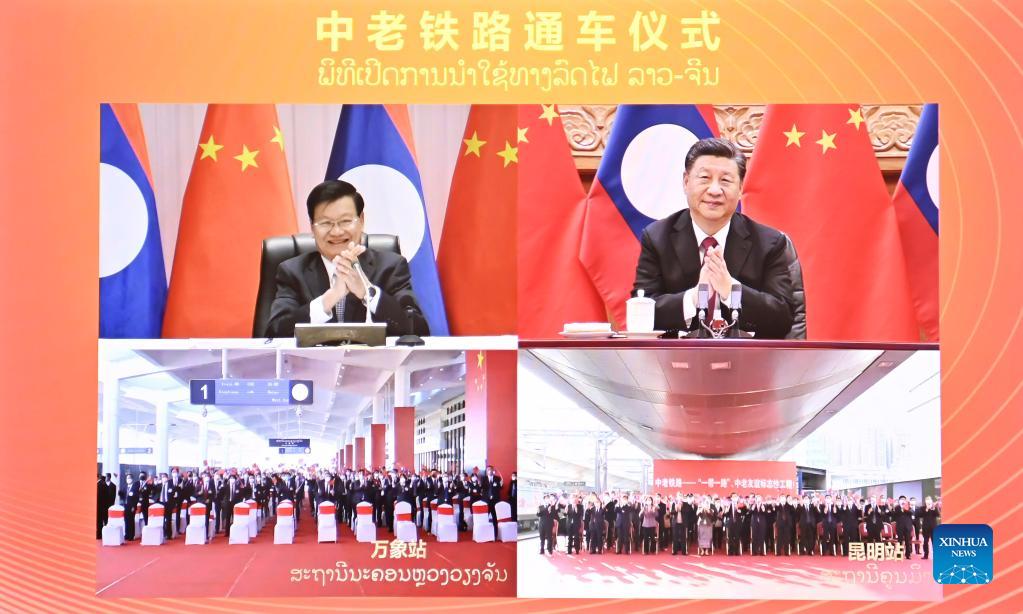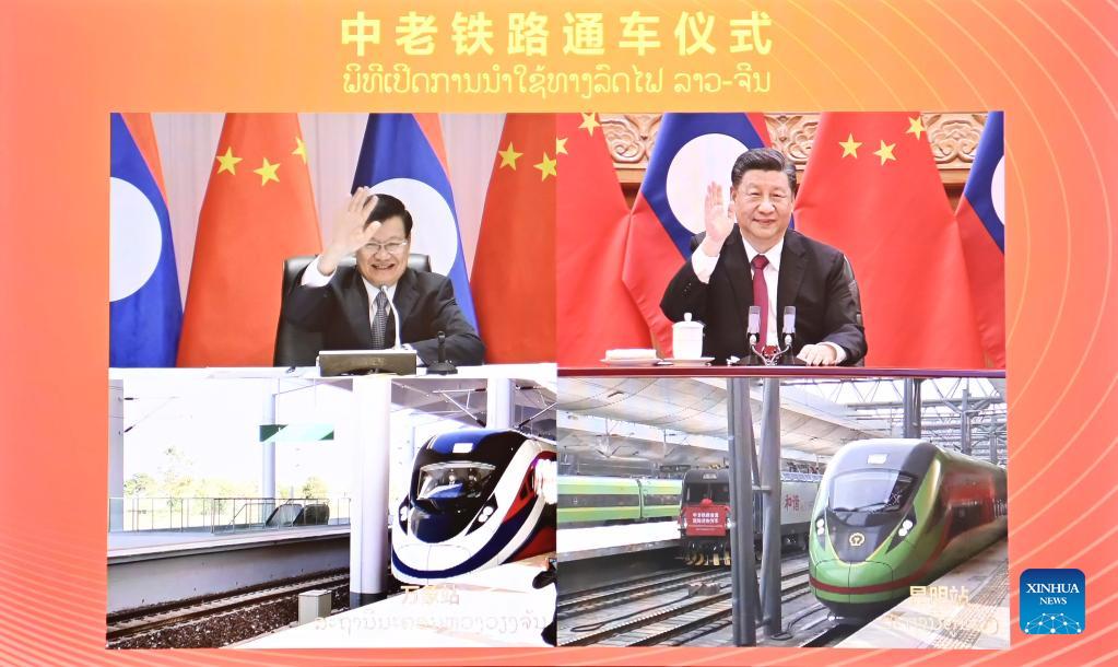 BEIJING, Dec. 3 (Xinhua) -- Xi Jinping, general secretary of the Communist Party of China (CPC) Central Committee and Chinese president, attended the opening ceremony of the China-Laos Railway with Thongloun Sisoulith, general secretary of the Lao People's Revolutionary Party Central Committee and Lao president via video link Friday.