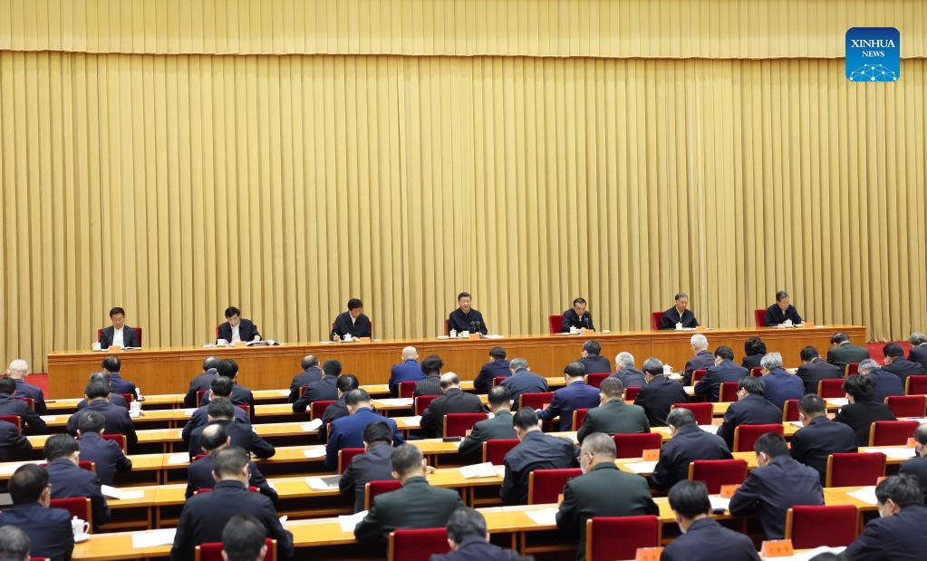 Chinese President Xi Jinping, also general secretary of the Communist Party of China Central Committee and chairman of the Central Military Commission, addresses a national conference on work related to religious affairs in Beijing, capital of China. Li Keqiang, Li Zhanshu, Wang Yang, Wang Huning, Zhao Leji and Han Zheng also attended the conference which was held from Friday to Saturday. (Xinhua/Ding Haitao)
