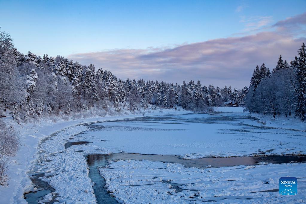 Photo taken on Dec. 5, 2021 shows the winter landscape in Ogre, Latvia. (Photo by Edijs Palens/Xinhua)