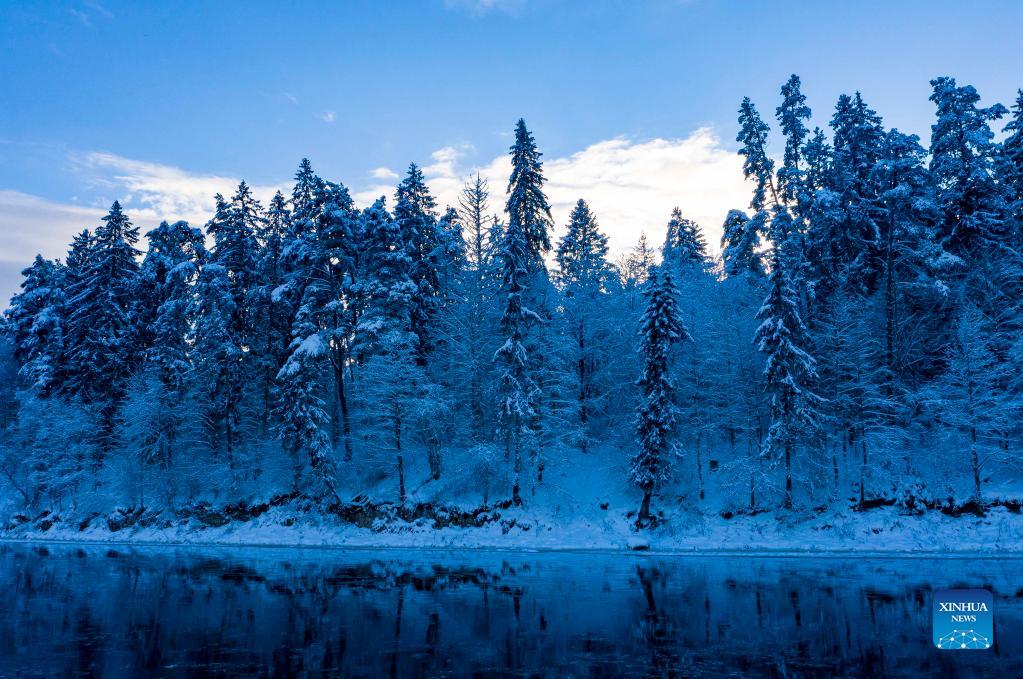 Photo taken on Dec. 5, 2021 shows the winter landscape in Ogre, Latvia. (Photo by Edijs Palens/Xinhua)