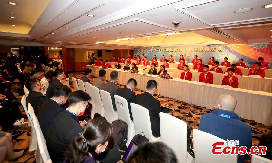 A delegation of Chinese mainland Olympians attends a press conference upon their arrival in Hong Kong, December 3, 2021. (Photo: China News Service/Zhang Yu)