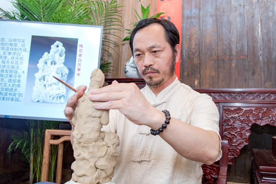 The ancient porcelain technique goes through three processes - preparing clay, carving, and sintering - and was included on the list of China’s National Intangible Cultural Heritage in 2016.