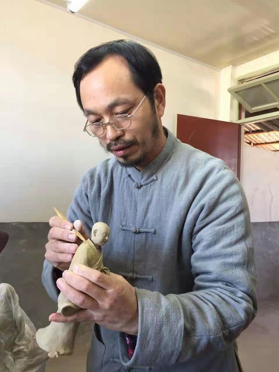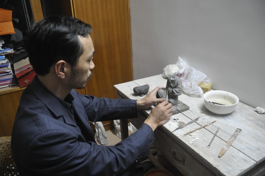 Chen Mingliang carves a piece of greenware. (Photo courtesy of the interviewee)