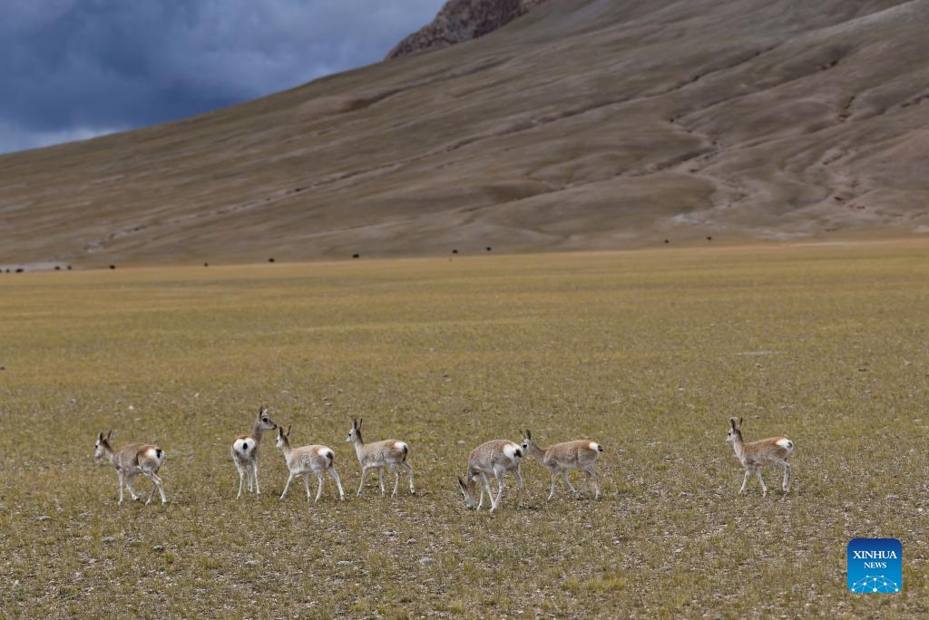 A herd of Tibetan gazelles are pictured at the Qiangtang National Nature Reserve in southwest China's Tibet Autonomous Region, Sept. 25, 2021. (Xinhua/Jigme Dorje)