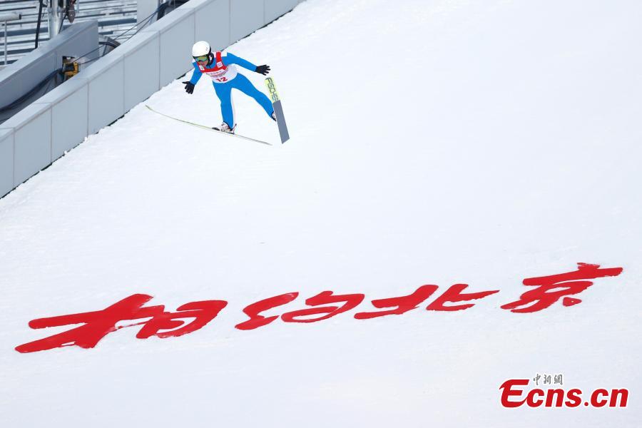 A participant competes during the individual Gunderson LH/10KM ski jumping event of Nordic combined at the National Ski Jumping Center in Chongli District of Zhangjiakou City, north China's Hebei Province, Dec 4, 2021. (Photo: China News Service/Fu Tian)