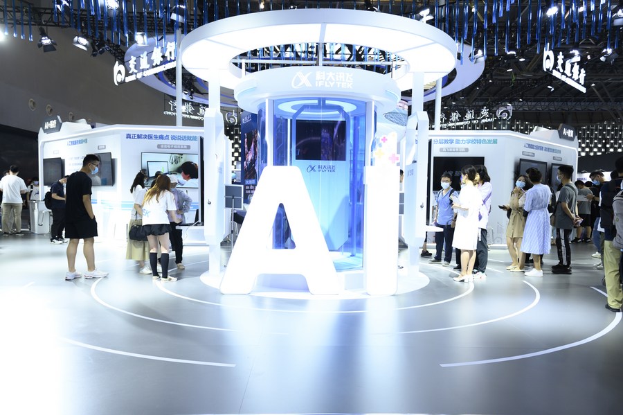 People visit the 2021 World Artificial Intelligence Conference (WAIC) in east China's Shanghai, July 8, 2021. (Xinhua/Hu Zhixuan)