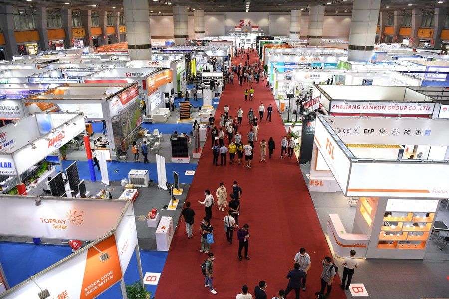People visit the 130th session of the China Import and Export Fair, or the Canton Fair, in Guangzhou, south China's Guangdong Province, Oct. 15, 2021. (Xinhua/Deng Hua)