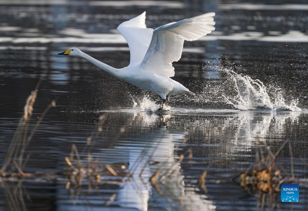 A swan is pictured on the Qingshui river in Miyun District of Beijing, capital of China, Dec. 7, 2021. (Xinhua/Chen Yehua)