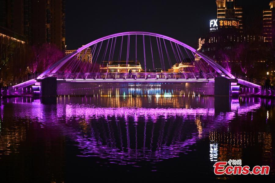 Colorful lights brighten up the Liangma River International Style Waterfront in Chaoyang District, Beijing, capital of China, Dec.7, 2021. (Photo: China News Service/Hou Yu)
