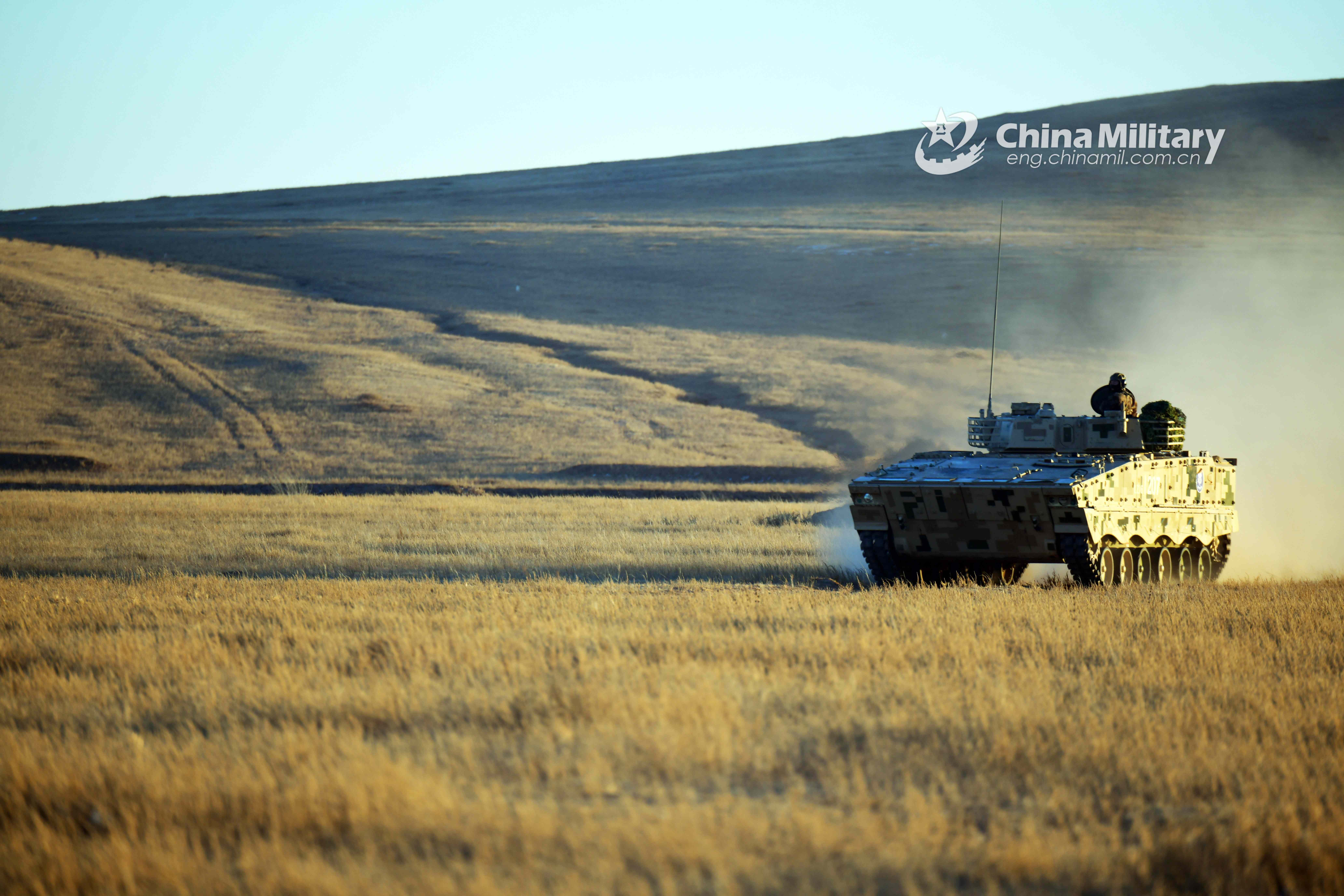 An infantry fighting vehicle (IFV) attached to a brigade under the PLA 81st Group Army searches for enemies en route to the designated area during an integrated training exercise on November 23, 2021. (eng.chinamil.com.cn/Photo by Yang Pengfei)