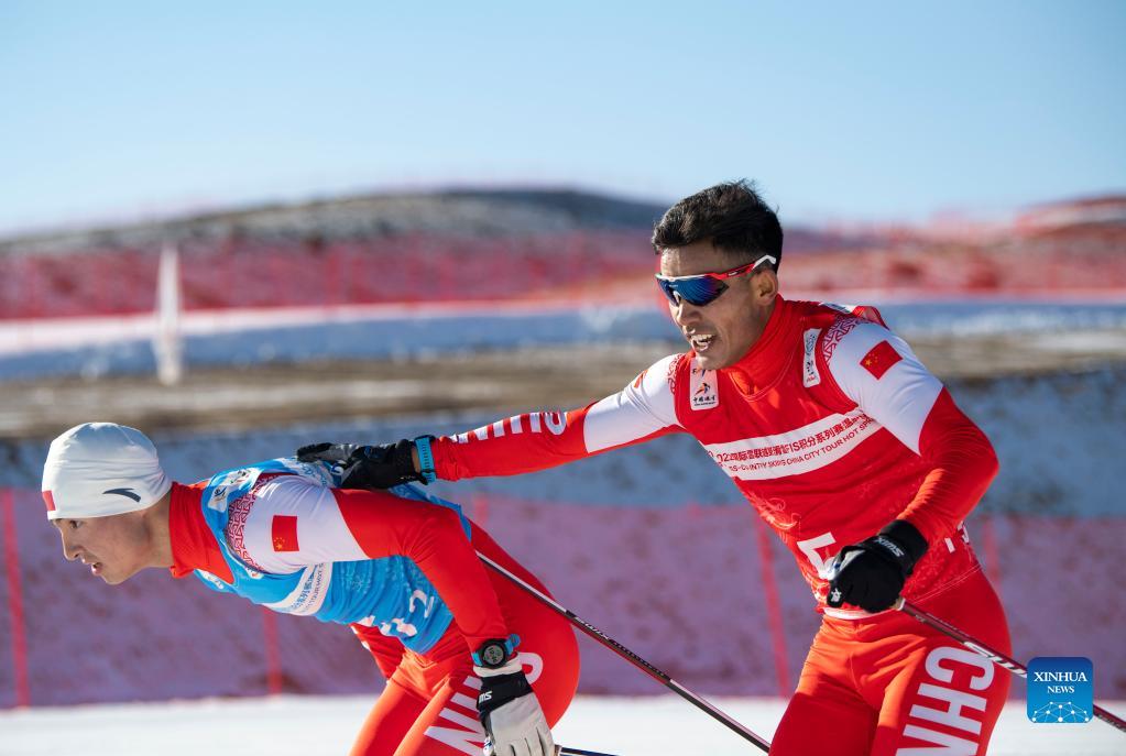 Torsongan Bullik competes in a cross-country skiing competition in Wenquan County, northwest China's Xinjiang Uygur Autonomous Region, Nov. 24, 2021. Torsongan Bullik is a Xinjiang cross-country skiing athlete. He used to be a cyclist and won several champions. Torsongan Bullik shifted from cycling to cross-country skiing on November 20, 2018. He went for cross-country skiing, because there is a chance to attend the Olympics. There is a huge difference between cycling and cross-country skiing, but the Olympic dream led Xinjiang athlete come over all challenges. He is now well prepared and ready to fight for the championship in 2022 Beijing Olympics. (Xinhua/Hu Huhu)