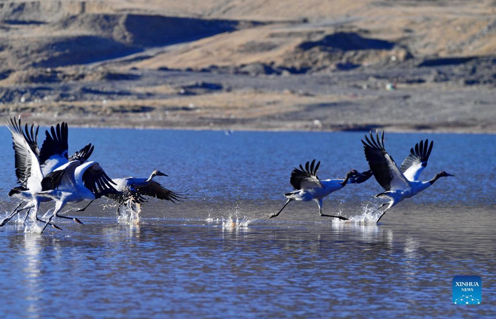 About 1,500 black-necked cranes fly to Lhunzhub County of China's Tibet (3)