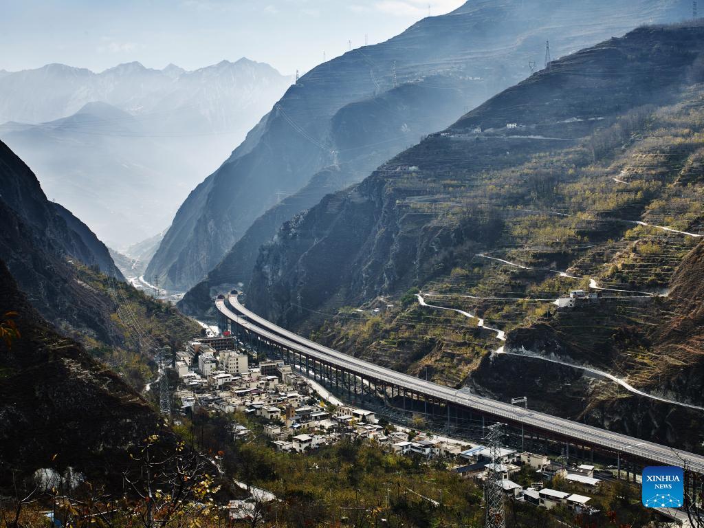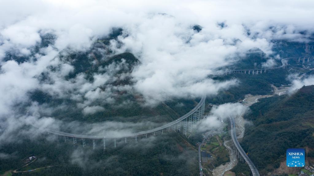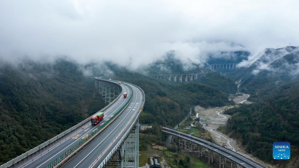 Aerial photo taken on Oct. 23, 2021 shows a section of Ya'an-Xichang expressway in southwest China's Sichuan Province. A series of "Super Projects" in Sichuan have been built to promote the development of western China, making contributions to local economic and social development. (Xinhua)