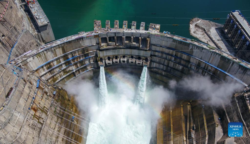 Aerial photo taken on June 10, 2021 shows Baihetan hydropower station in southwest China. A series of "Super Projects" in Sichuan have been built to promote the development of western China, making contributions to local economic and social development. (Xinhua/Xu Bingjie)