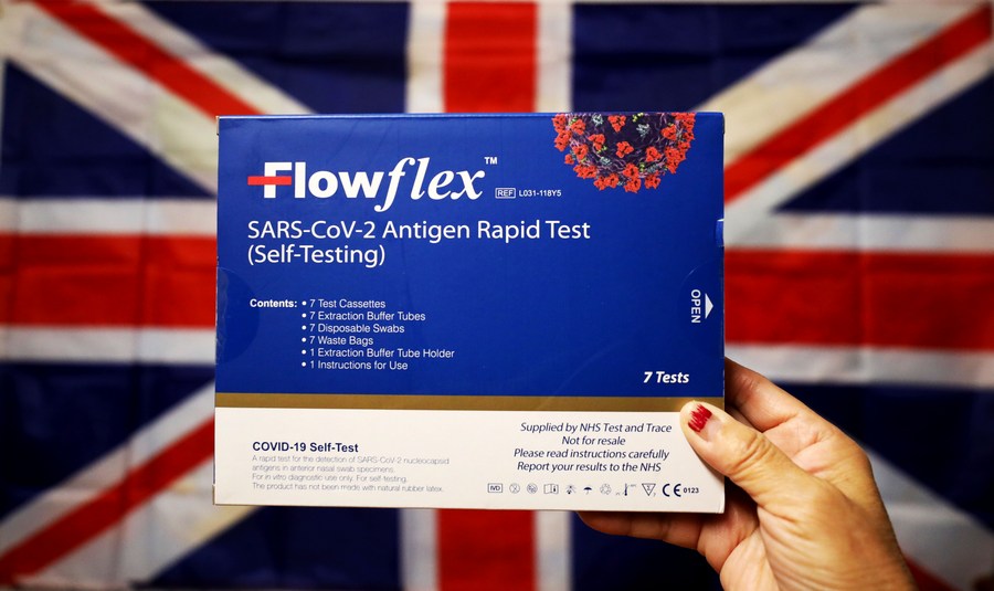 Photo taken on Dec. 7, 2021 shows a COVID-19 rapid test kit in London, Britain. (Xinhua/Li Ying)