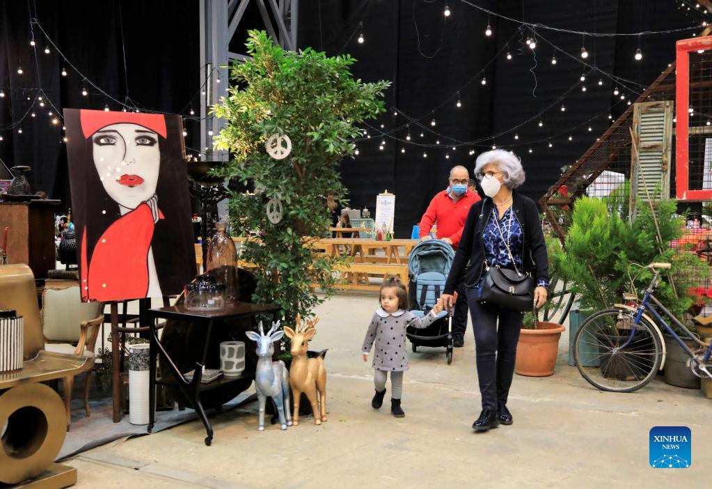 People visit an exhibition dubbed "Flea Market" in Beirut, Lebanon, on Dec. 11, 2021. The five-day exhibition from Wednesday displays items including furniture, household appliances, paintings, clothes, accessories, among others. (Xinhua/Liu Zongya)