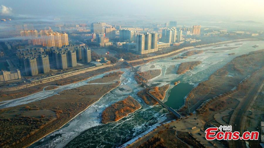 The photo taken on Dec 11, 2021 shows ice floes in the Kaidu River in Bohu County, northwest China's Xinjiang Uyghur Autonomous Region after "Daxue" (Greater Snow), the 21st of the 24 solar terms. (File photo/China News Service)