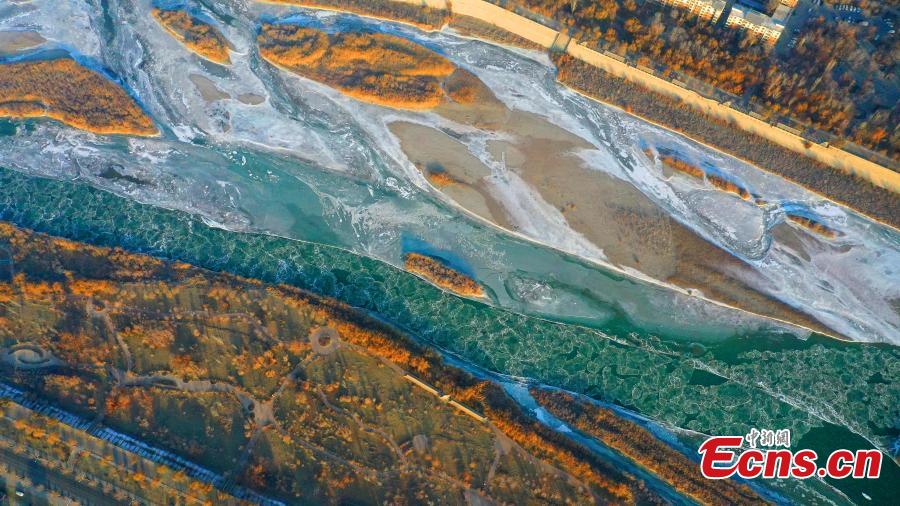 The photo taken on Dec 11, 2021 shows ice floes in the Kaidu River in Bohu County, northwest China's Xinjiang Uyghur Autonomous Region after "Daxue" (Greater Snow), the 21st of the 24 solar terms. (File photo/China News Service)