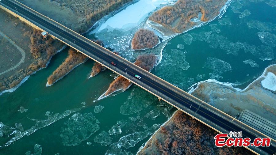 The photo taken on Dec 11, 2021 shows ice floes in the Kaidu River in Bohu County, northwest China's Xinjiang Uyghur Autonomous Region after "Daxue" (Greater Snow), the 21st of the 24 solar terms. (File photo/China News Service)