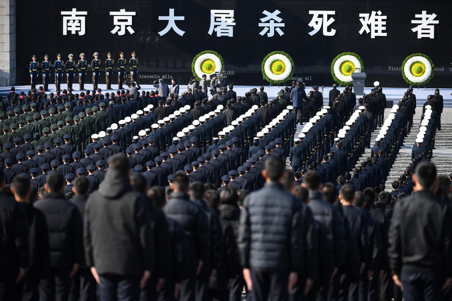 China holds its eighth national memorial ceremony for the Nanjing Massacre victims at the Memorial Hall of the Victims in Nanjing Massacre by Japanese Invaders in Nanjing, capital of east China's Jiangsu Province, Dec. 13, 2021. (Xinhua/Ji Chunpen)