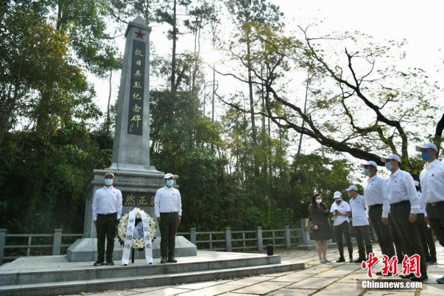 Hong Kong citizens gathered at the Wu Kau Tang monument to hold a commemoration for martyrs who died in their resistance against the Japanese invasion of Hong Kong, on Dec 12, 2021, which marks China's eighth National Memorial Day for the Nanjing Massacre Victims. (China News Service/Li Zhihua)