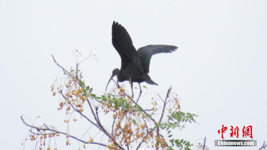 The undated photo shows a glossy ibis, under first-class state protection in China, are spotted at Danzhou Bay in south China's Hainan Province. (China News Service/Chen Zhengping)