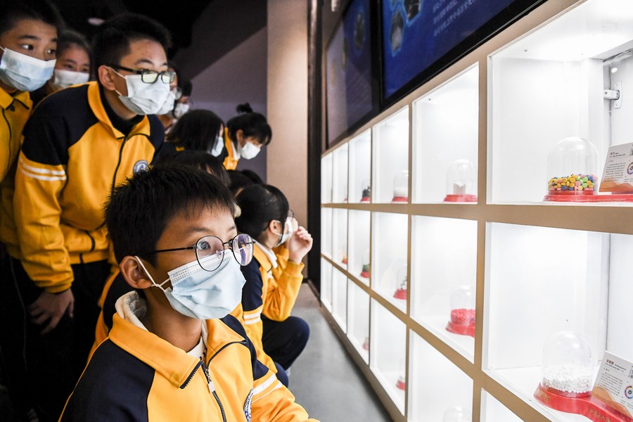 Students learn about the harm, traits and varieties of drugs at an educational base in Xingye County, south China's Guangxi Zhuang Autonomous Region, Nov. 18, 2021. Local authorities on Thursday hosted a series of activities to raise anti-drug awareness among young people. (Xinhua/Cao Yiming)