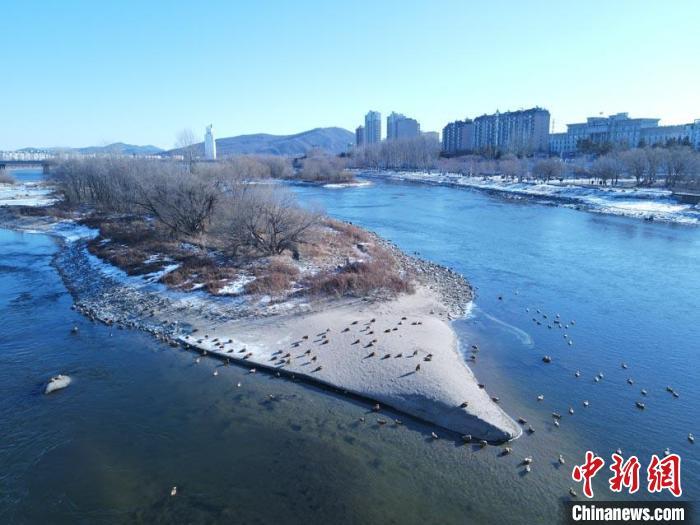 Thousands of water birds roost Songhua River in Jilin (3)