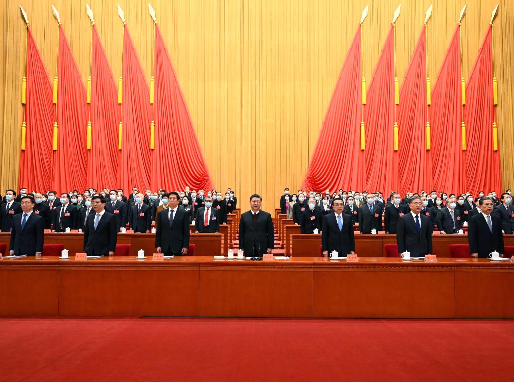 Xi Jinping, Li Keqiang, Li Zhanshu, Wang Yang, Wang Huning, Zhao Leji and Han Zheng attend the opening ceremony of the 11th National Congress of China Federation of Literary and Art Circles and the 10th National Congress of China Writers Association at the Great Hall of the People in Beijing, capital of China, Dec. 14, 2021. (Xinhua/Li Xueren)