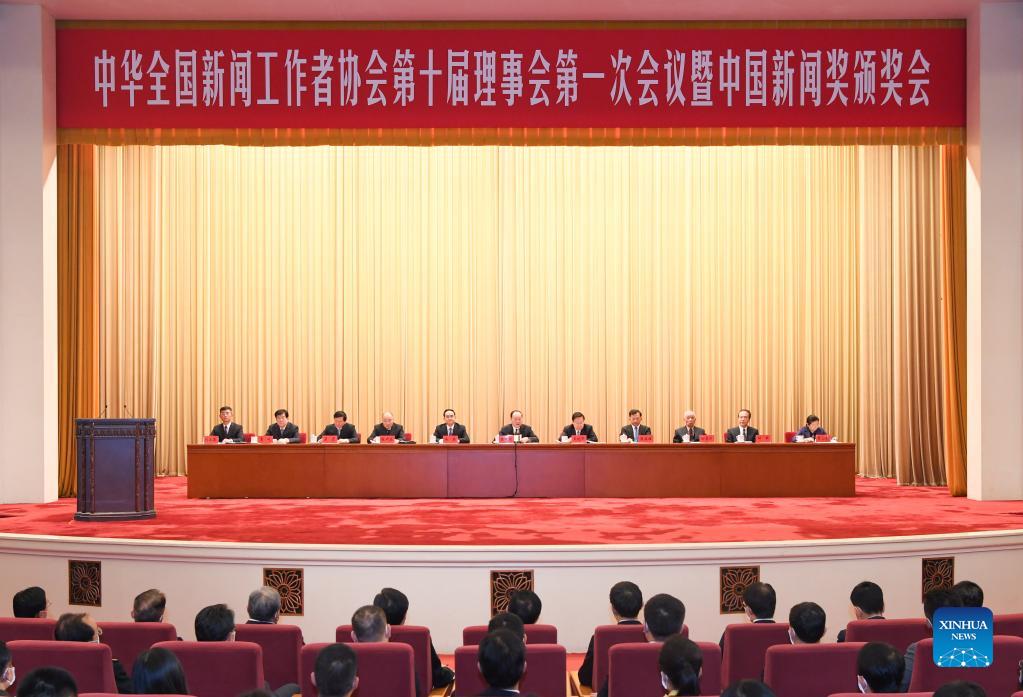 Huang Kunming, a member of the Political Bureau of the Communist Party of China (CPC) Central Committee and head of the Publicity Department of the CPC Central Committee, addresses a conference of the All-China Journalists Association (ACJA) and the awarding ceremony of this year's China Journalism Award on behalf of the CPC Central Committee, in Beijing, capital of China, Dec. 15, 2021. (Xinhua/Shen Hong)
