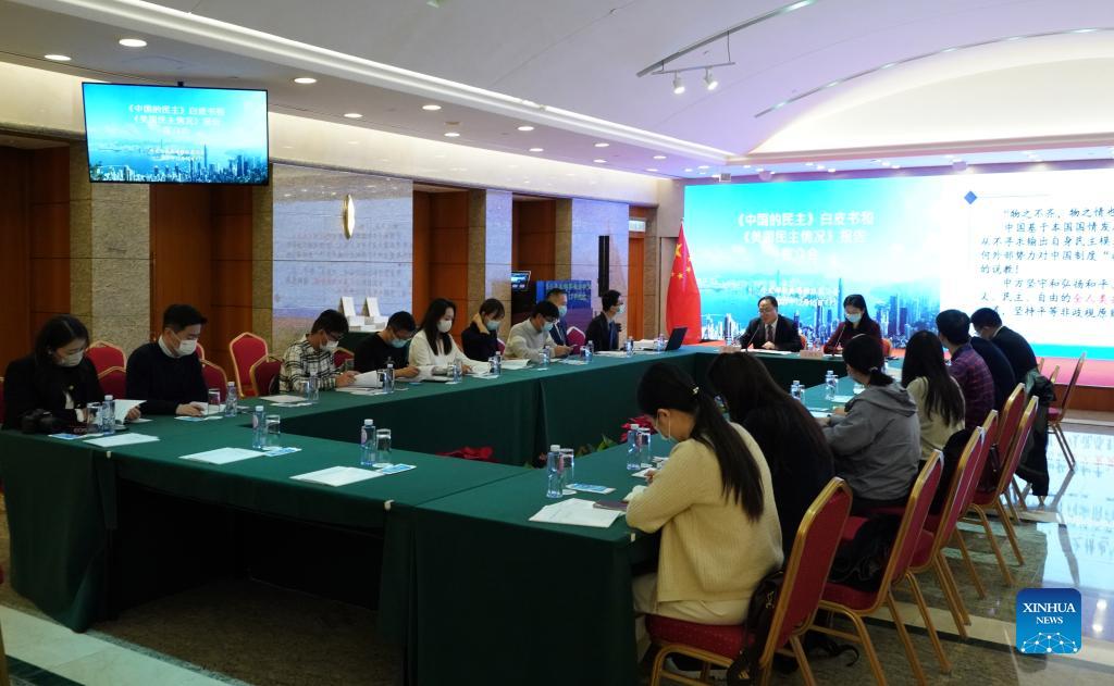 HONG KONG, Dec. 15 (Xinhua) -- The Office of the Commissioner of the Chinese Foreign Ministry in the Hong Kong Special Administrative Region (HKSAR) held a briefing Wednesday on strengthening confidence in China's democratic system while criticizing U.S. hypocrisy.