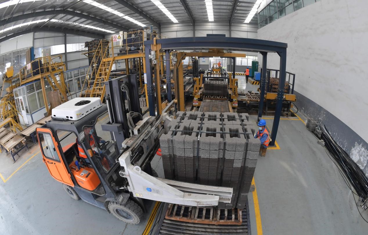 At China Construction Fourth Engineering Division Corp. Ltd.’s construction site in Guangzhou, capital of south China’s Guangdong province, residual waste is ground into fine aggregates and turned into bricks permeable to water.